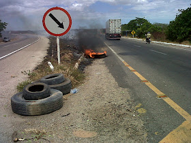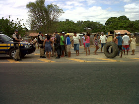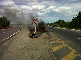 Moradores de um assentamento do movimento sem terra que fica localizado as margem da BR-304 depois do posto da PRF saída para as cidades de Tibau/Fortaleza interditaram na manhã de hoje a BR, queimando pneus e fazendo o trânsito parar nos dois sentidos. Motoristas ficaram inconformados com a situação.