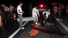 José Hélio de Araujo, 34 anos de idade, operário, residente na cidade de Santa Maria/RN, foi colhido pelo veiculo no momento que fazia a sinalização da rodovia usando a placa de “Pare e Siga”. Segundo informações colhidas pela polícia, houve imprudência por parte do condutor do veiculo, que não respeitou a sinalização, passou por cima de vários cones e atropelou José Hélio, arrastando o mesmo por 25 metros do local da colisão.