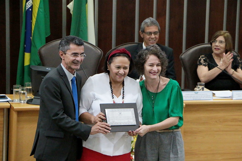 A governadora Fátima Bezerra foi uma das 81 personalidades homenageadas na sessão solene em comemoração aos 30 anos de fundação do Sindicato dos Trabalhadores em Educação Pública do RN (SINTE-RN), realizada na tarde desta quinta-feira, 12, na Assembleia Legislativa do Estado, por iniciativa do deputado estadual Francisco de Medeiros.
