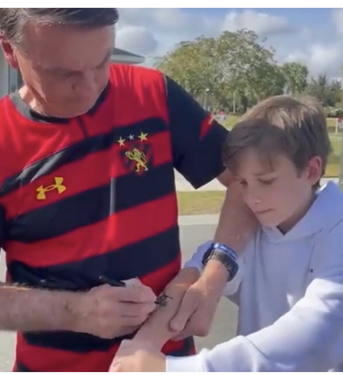 Ainda em Orlando, Jair Bolsonaro segue sendo tietado e ovacionado por brasileiros que lá estão morando ou visitando. Em um momento de bastante descontração um menino pede para que Bolsonaro autografe seu braço. Antes de concluir o autografo o jovem brinca que ”nunca mais vai tomar banho“, para não apagar a assinatura. Todos em volta, inclusive Bolsonaro, riram da brincadeira.