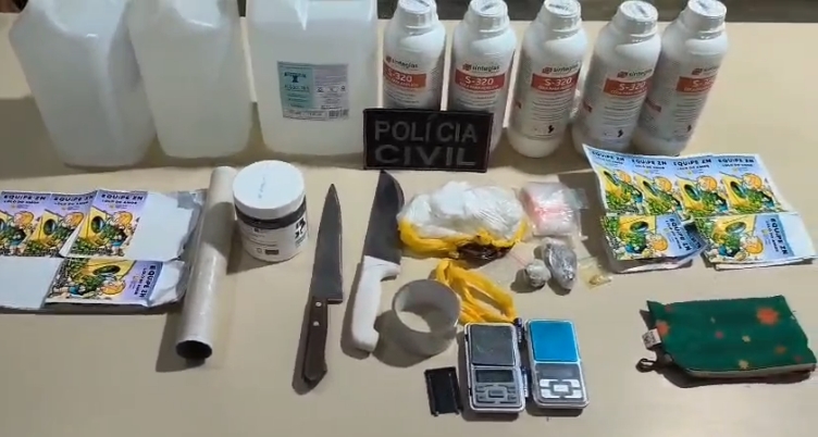 Durante o cumprimento das diligências em Caicó, um homem foi preso em flagrante pelos crimes de tráfico de drogas e exposição à venda de substância nociva à saúde.