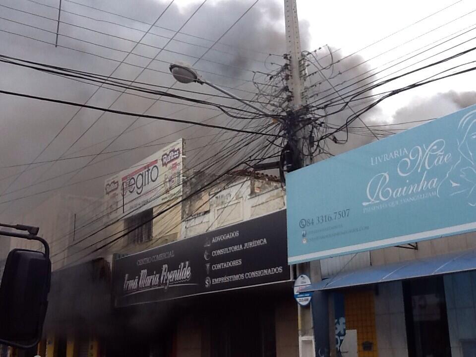 Movimentação intensa no centro comercial de Mossoró, na manhã desta terça-feira, 7, com um incêndio em uma loja.